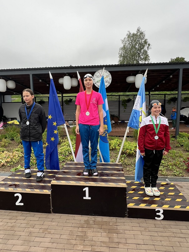 2.vieta 50 m brīvais stils (2011.–2012. dz.g. meitenes) Elzai Grīnbergai – 32.61 (tr. S. Lāpāne).